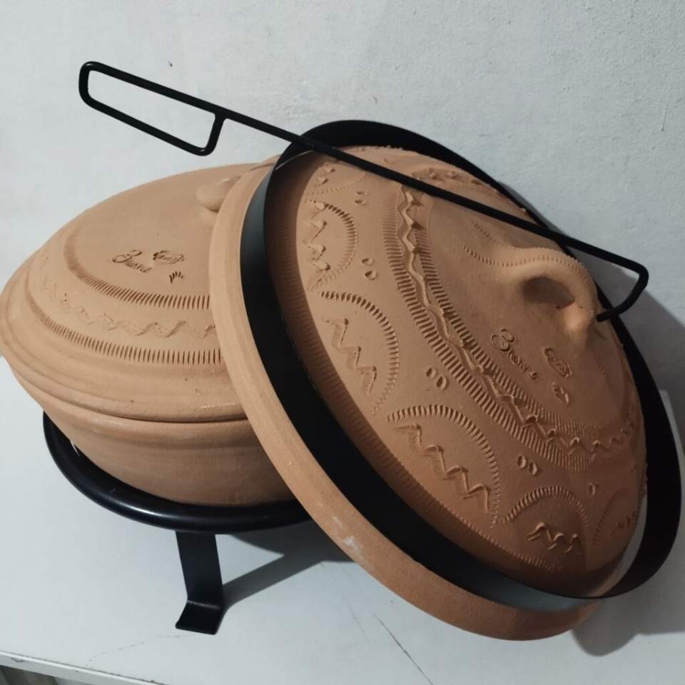 Pekač sa dva poklopca – jedan za rernu a drugi vani za žar sa metalnim postoljem, obručem i kukačom . 32 cm